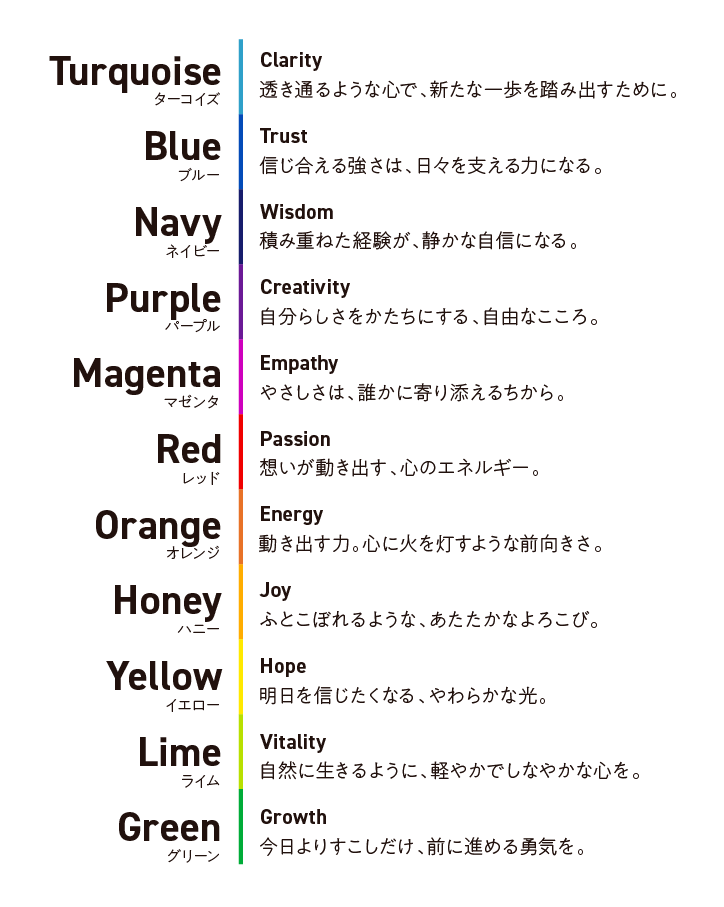 Eleven Heartが大切にしている11の価値を、11の色で表現しました。